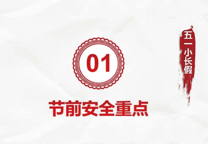 五一假期将至,安全先行!了解节前安全重点与假期安全提示,确保您和家人的假期平安无忧。本文提供全面的安全指南,包括出行安全、居家防护、食品安全等关键信息,助您预防潜在风险,享受愉快假期。阅读详细提示,掌握实用安全知识,为五一假期增添一份安心与保障。